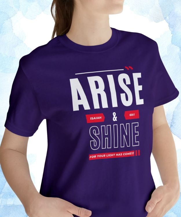 Wear this tee as an emblem of your commitment to shine His light, reminding yourself and others of the call to “Arise And Shine” in His name.