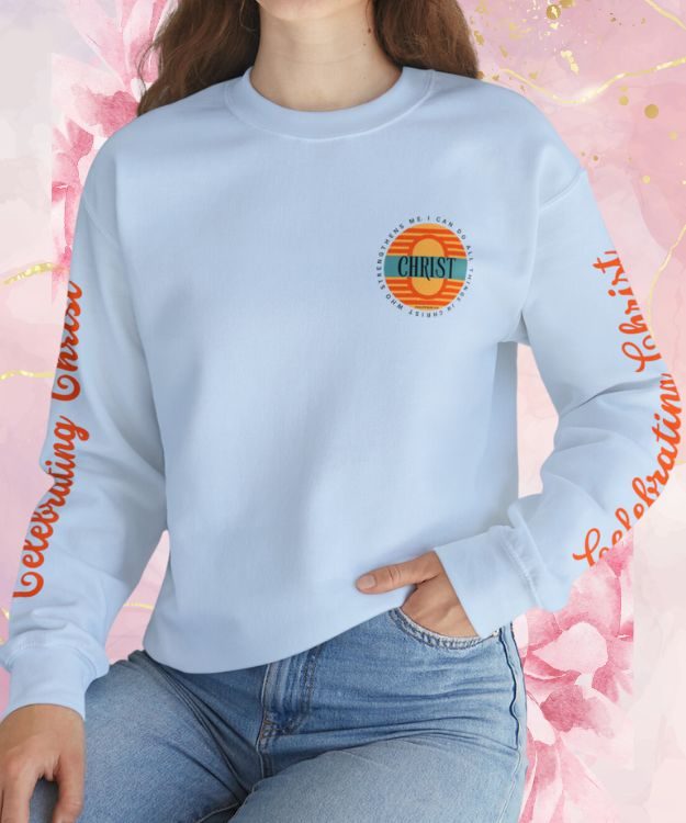 Experience divine comfort with the “Celebrating Christ” unisex sweatshirt, featuring Philippians 4:13 on the front left chest and the powerful message “Celebrating Christ” down both sleeves—a reminder of strength through faith!