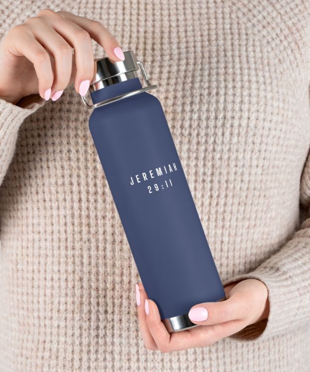 “Jeremiah 29:11” 22oz Vacuum Insulated Bottle: Keep your beverages at the perfect temperature with a touch of spiritual inspiration.
