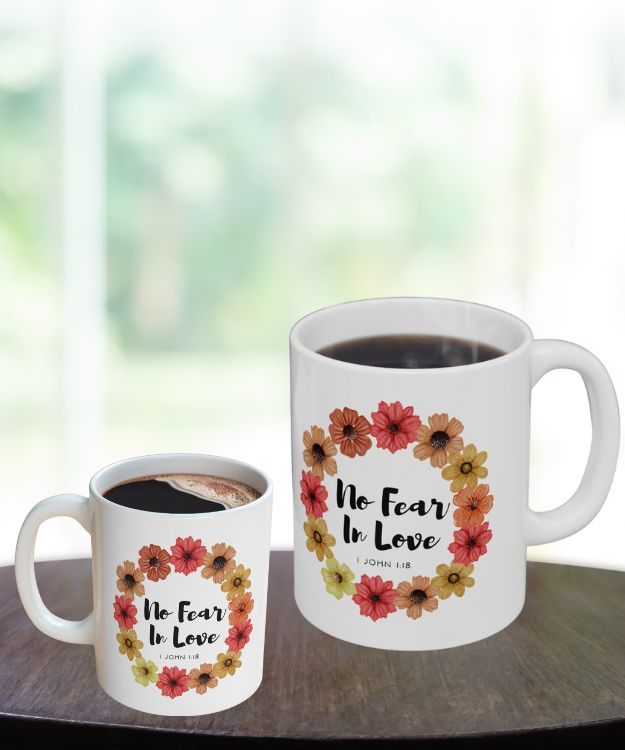 Sip in faith with the “No Fear In Love” mug, a Christian tribute inspired by 1 John 4:18. A daily reminder of God’s boundless and fearless love.