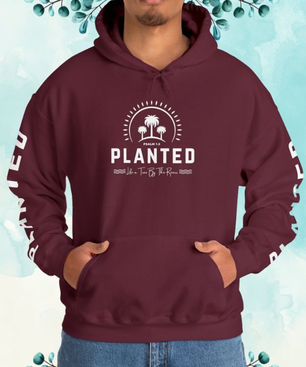 Find warmth and spiritual inspiration in our “Planted Like a Tree by the Rivers” unisex hoodie-sweatshirt. Inspired by the profound words of Psalm 1:3, this hoodie not only stands as a testament to enduring faith but also offers a chic style statement with the word “Planted” gracefully printed on both sleeves. Crafted for comfort, it’s the perfect choice for cooler days, making it an ideal blend of fashion and function. Whether you’re headed for a casual outing, or just seeking solace in your thoughts at home, let this hoodie envelop you in coziness and the powerful message it carries. Perfect for those who take pride in their faith and wish to wear it close to their heart.
